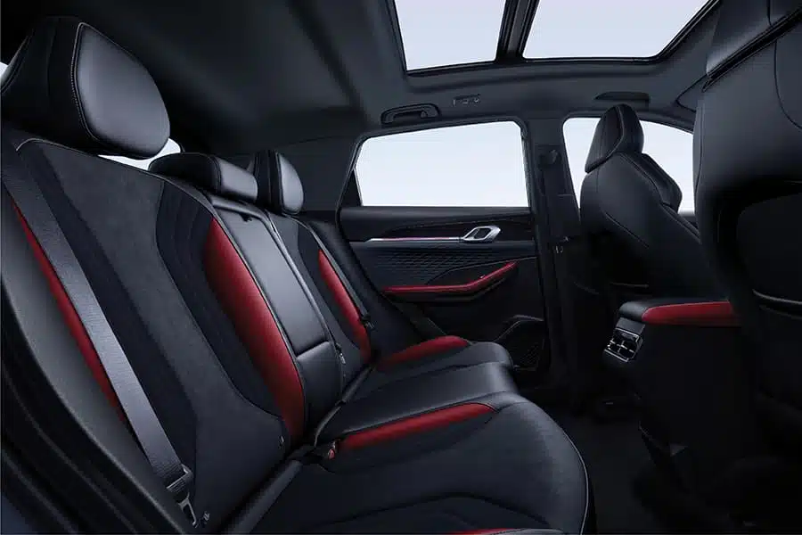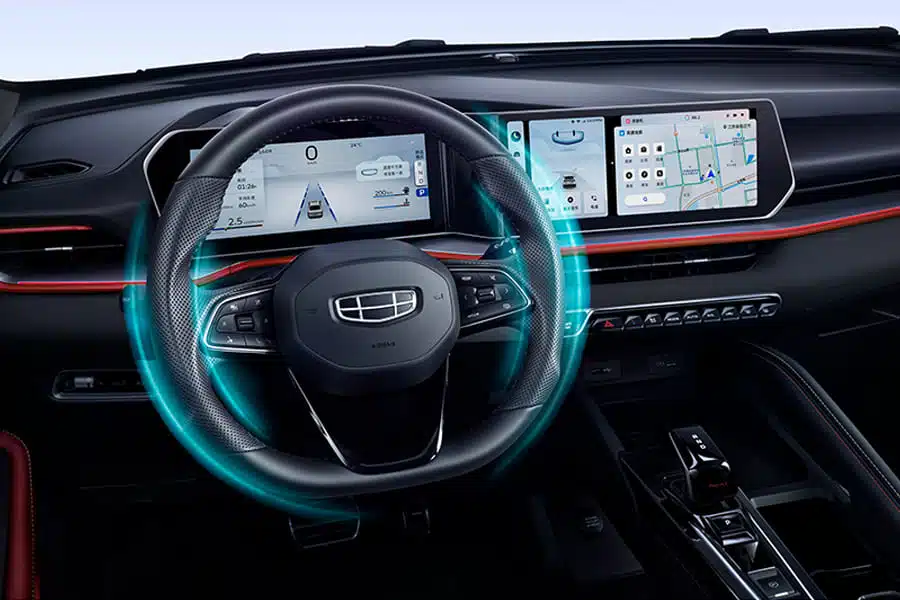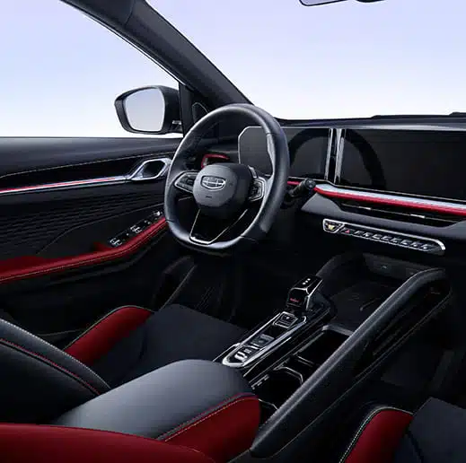 The new Coolray takes interior design to another level with the classic yet Dynamic Red and Black interior option, capturing the youthful and fashionable spirits. From the ambient lighting strip to the flowing integrated dual screens, and lastly to the super sporty intelligent gear shifter, the cabin awakens the driver's energy. Ergonomically designed suede driver seat, seat ventilation and rear AC outlet make sure the journey meets the utmost comfort and convenience.